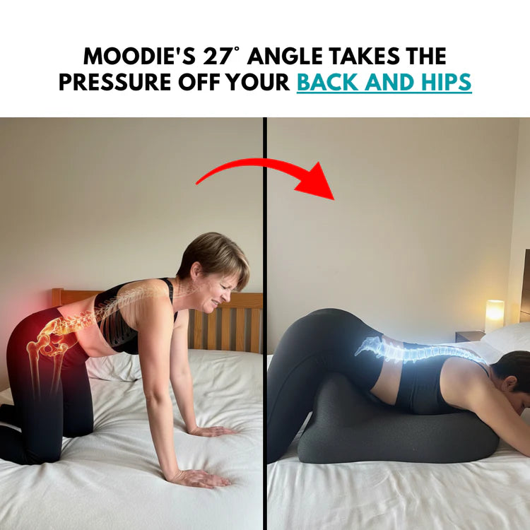 Many customers use their Moodie daily for post-workout recovery, elevating legs after long days, or simply as premium lumbar support. One pillow, countless comfort moments.